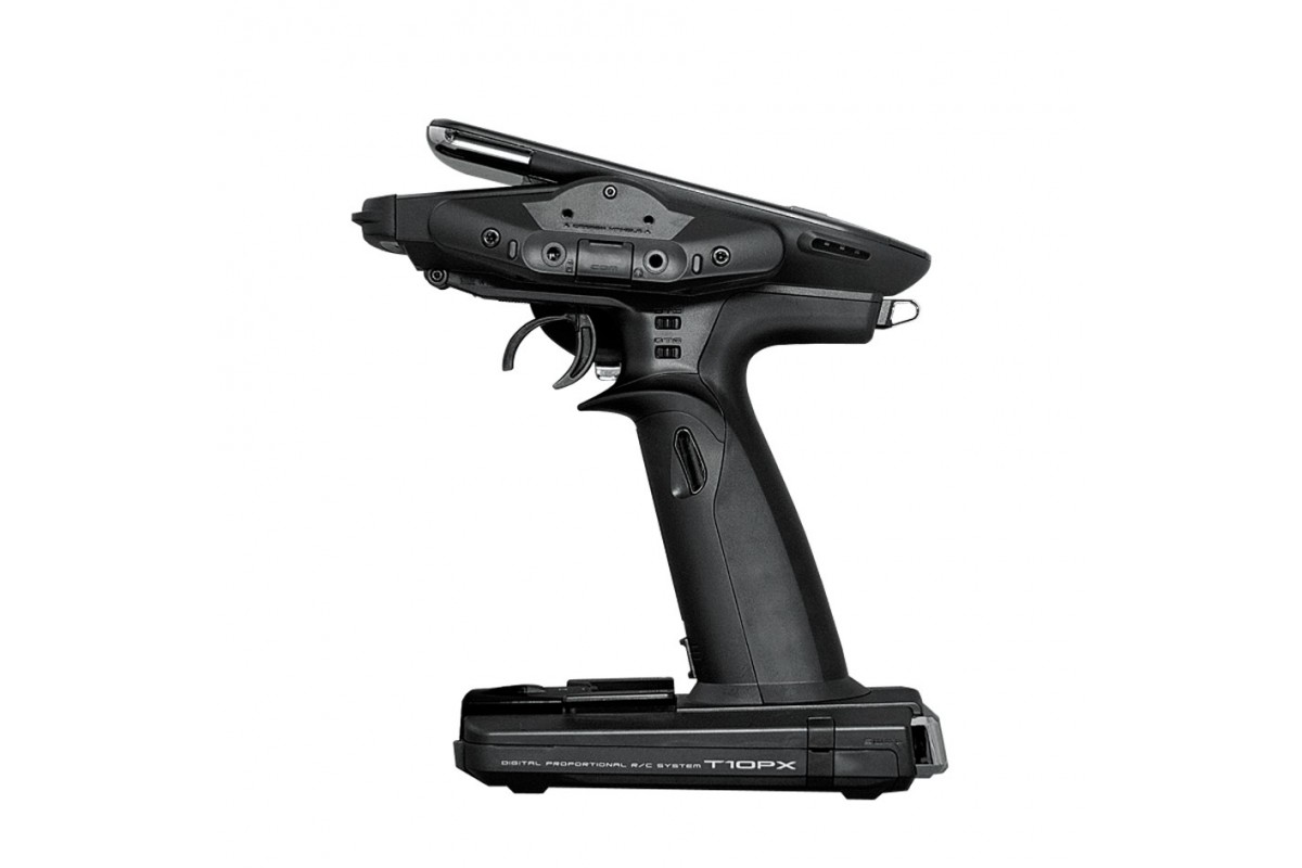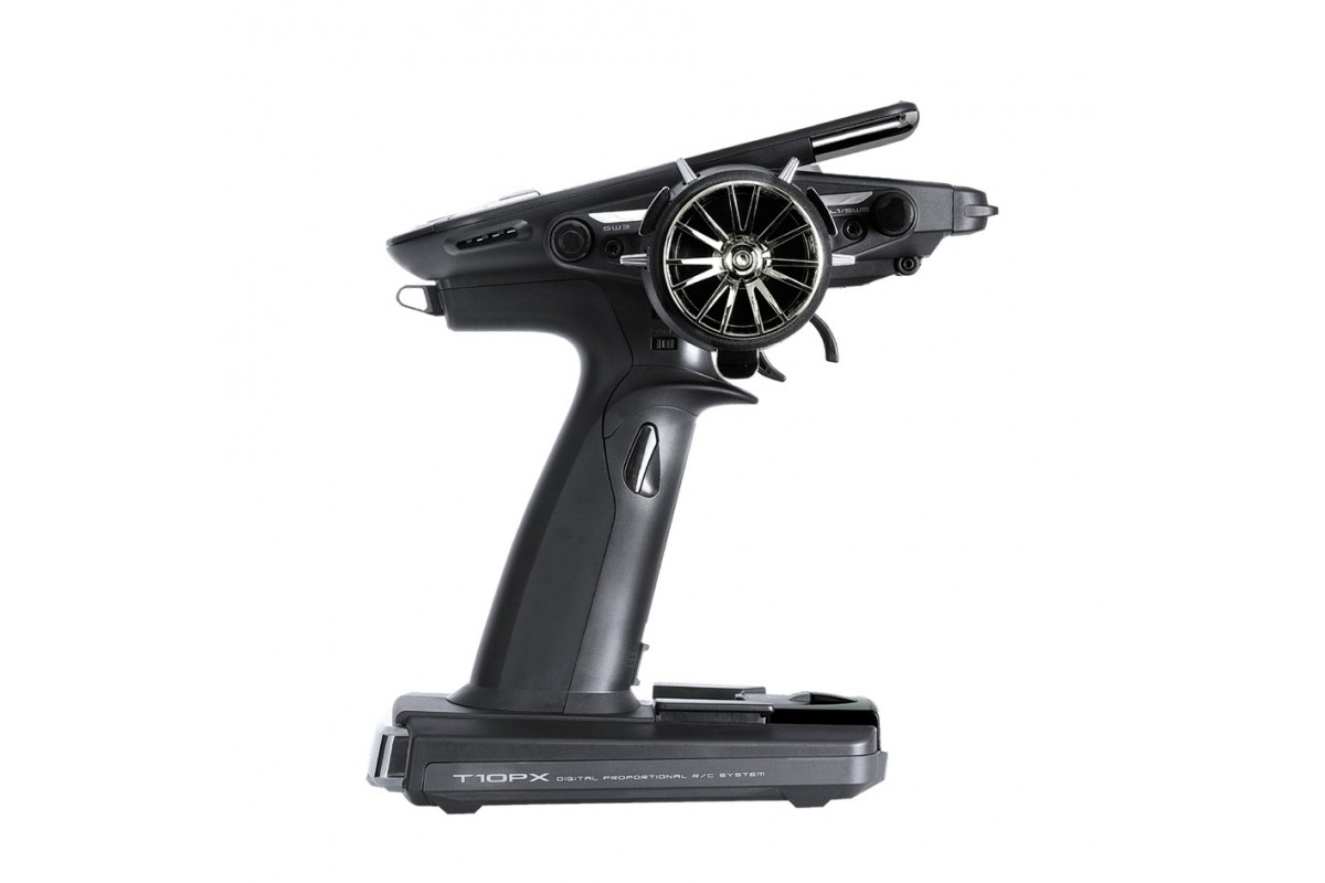 FUTABA T10PX – a new Star is born…! Mit der T10PX setzt FUTABA erneut die Referenz in der Klasse der Computer-Pistolensender für RC-Cars und Boote. Der 10-Kanal-Computer-Pistolensender verfügt über die brandneue und noch schnellere Übertragungsart F-4G, sowie über T-FHSS SR, T-FHSS, T-FHSS Mini-Z und S-FHSS. Das Senderdesign besticht mit optimierter Anordnung der Flatstyle-Tasten, einem großen und hellen 4,3 Zoll LCD Farb-Touchdisplay, sowie zusätzlichen Tastern, Mehrstufenschaltern und der neuen Schaltwippe unten am Fuß des Senders. Die Gewichtsverteilung im Sender ist im Vergleich zu den Vorgängern noch besser ausbalanciert und garantiert ein ermüdungsfreies Handling auch bei langen Einsätzen.