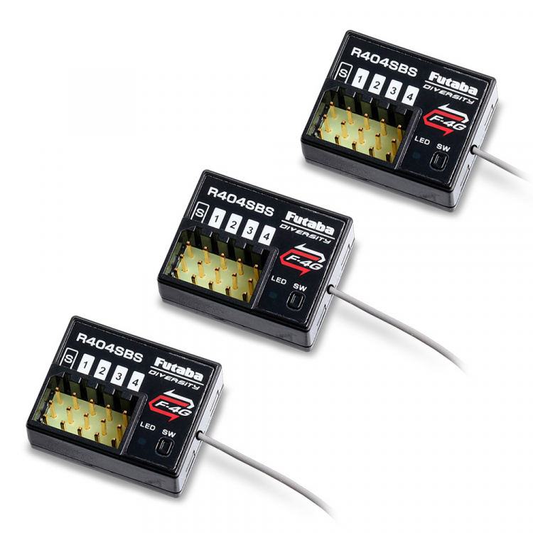 Die neue Übertragungsart F-4G (Futaba 4th Generation System) unterstützt den bisherigen SR-Mode und verfügt über eine noch höhere Übertragungsgeschwindigkeit als das bisherige T-FHSS SR. Gleichzeitig konnte bei den neuen F-4G Empfängern R404SBS / R404SBS-E die Baugröße nochmals verringert werden. Zudem steht der S.BUS2-Port jetzt in allen Übertragungsarten zur Verfügung (beim R334SBS/SBS-E ist der S.BUS2-Port im T-FHSS SR-Modus deaktiviert). Damit dies möglich ist, verfügt der R404SBS-E über eine große, nach oben bauende Antenne, um den Signalempfang zu optimieren. Durch die gewählte Formgebung bleibt die Grundfläche des Empfängers unverändert.